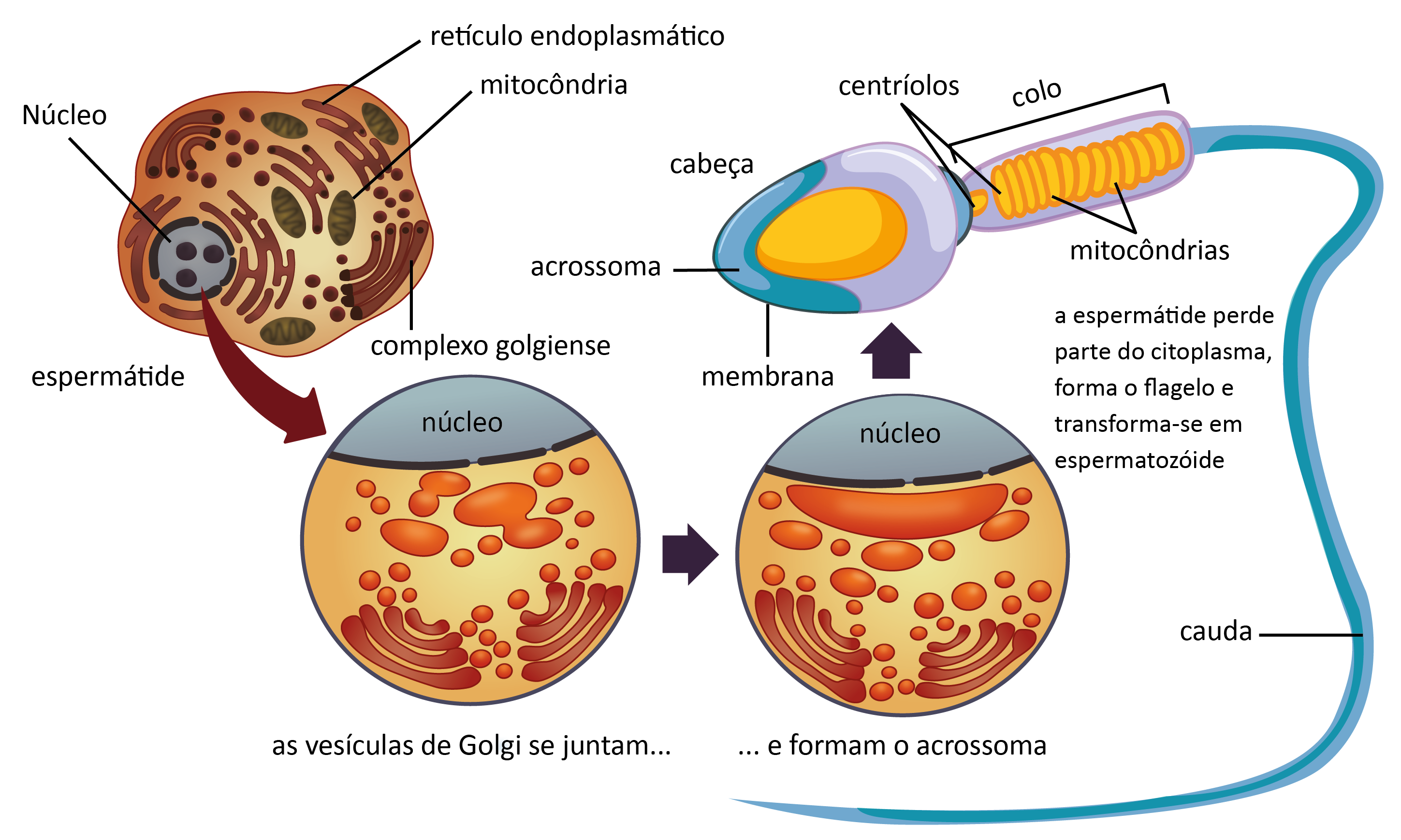 Durante a formação de um espermatozoide, diversos processos acontecem para que a célula precursora dê origem ao gameta. Um dos processos finais é a formação do acrossomo e da cauda do espermatozoide. Essas mudanças ocorrem no período conhecido como: